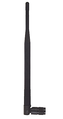 The antenna is a right angle swivel in black polyeurethane with a reverse polarity TNC Male connector.