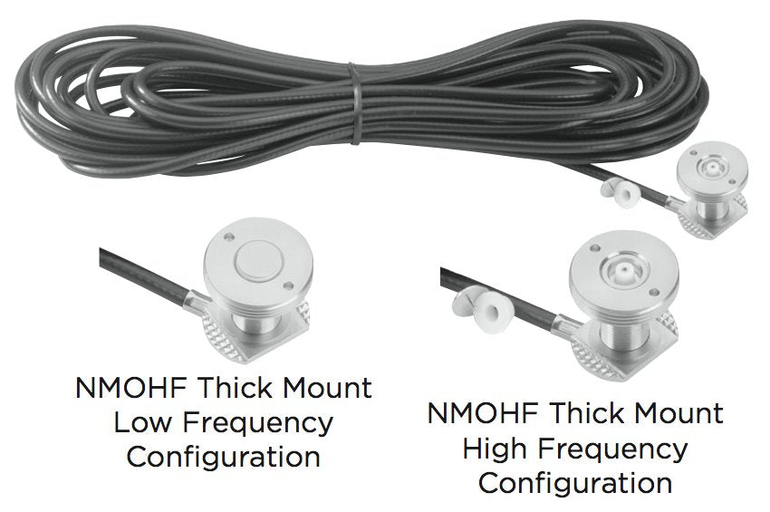 NMOKHFDSTHKFME: Montaje grueso de alta frecuencia NMO - Superficie de 1/2 pulgada de espesor - Escudo dual RG-58A/U de 17 pies - FME instalado