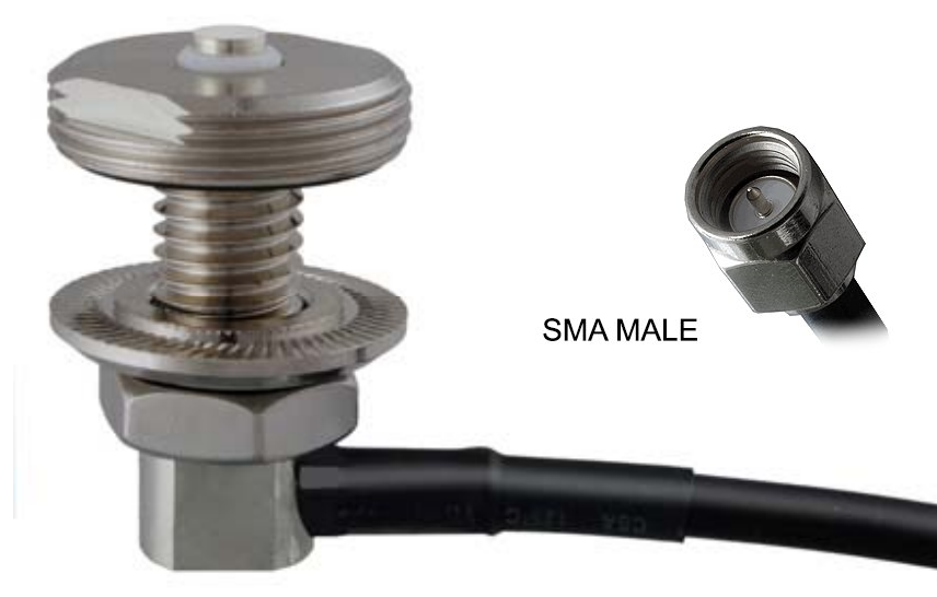 The RFMAX, RNMOV-195-SSM-C-17I is a thru-hole / thru-roof, NMO antenna mount. The mounts can be used with a 3/4" hole and is FULLY ADJUSTABLE for mounting thickness from 1/8 to 1/2 Inch. The assembly includes 17 ft. of Low-Loss LMR195 type cable and a Standard SMA Male (SSM) connector pre-installed.