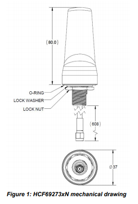 HCF69273WN-60A: Low-profile Omni-directional Indoor and Outdoor Antenna 698-960 MHz/1690-2700 MHz with SMA-Male Connector