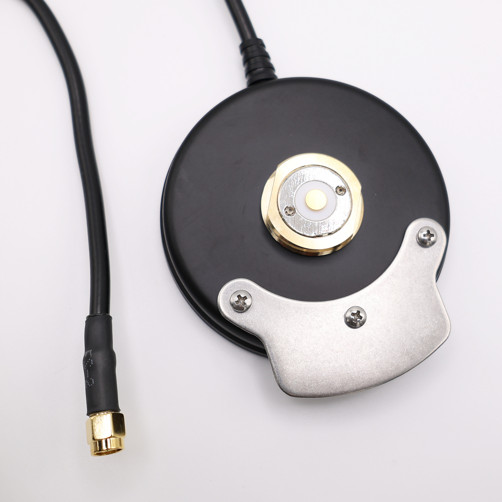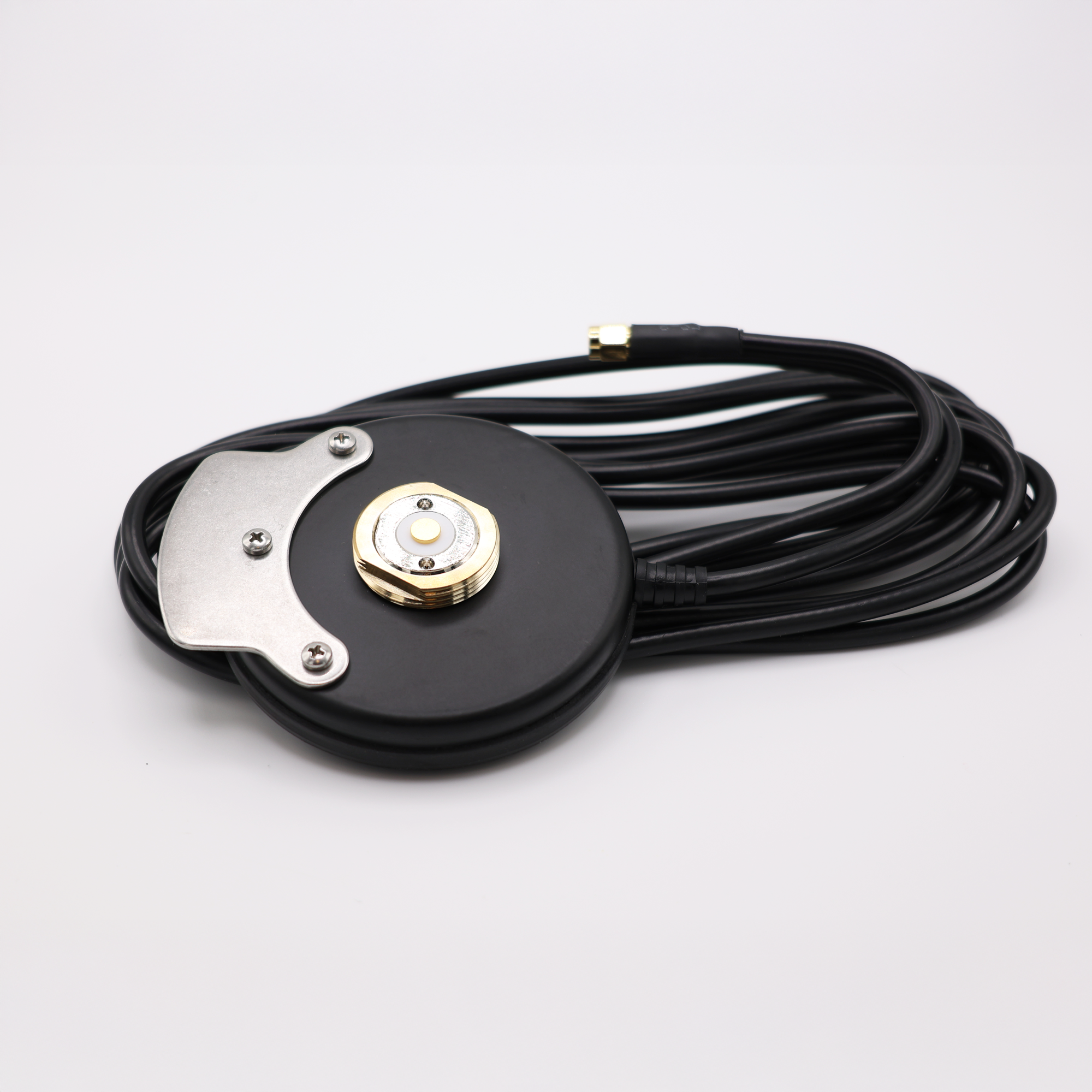 RNMOM-195-SSM-B-12I-ST is a super high quality Heavy Duty Magnetic NMO (New Motorola Mount) for antennas in high vibration conditions, 12 Ft of Low Loss 195 Cable with SMA Male Connector Installed, with PULL TAB and Strain Relief.